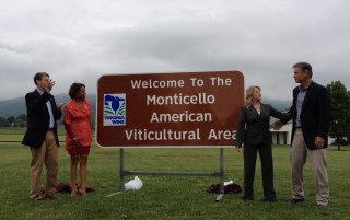 The first sign was unveiled earlier today in the Monticello AVA at King Family Vineyards in Crozet by First Lady Maureen McDonnell, Secretary of Agriculture and Forestry Todd Haymore, Interim Virginia Tourism Corporation Director Rita McClenny, and David King, co-owner of King Family Vineyards and a member of the Virginia Wine Board. As one of Virginia’s oldest AVA’s, Monticello is now home to 40 wineries. Throughout the spring and summer, signs will be placed at key points of entry in the Eastern Shore AVA, Northern Neck-George Washington Birthplace AVA, Shenandoah AVA and the Northern Virginia Wine Region.