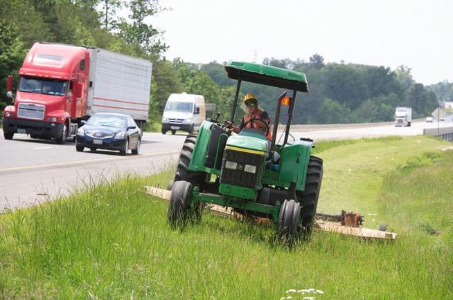 VDOT’s maintenance crews and contractors mow in a slow-moving mobile operation, with tractors and workers on foot. To protect workers, motorists are asked to: