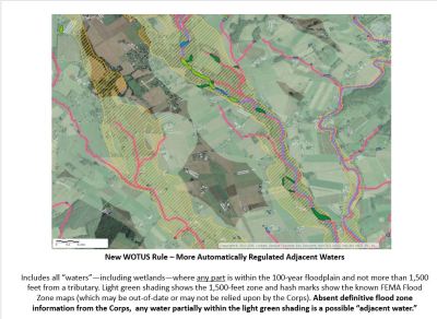 2) What qualifies for WOTUS? Under the broad language in the rules, just about any feature of your land could be identified as WOTUS. Easy to identify are navigable waters, including wetlands; rivers, streams and creeks that flow into navigable water. From there, you are playing a guessing game with a powerful regulator. They like it that way.