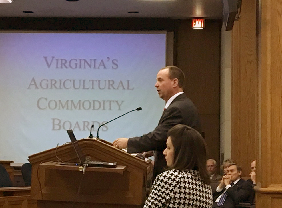 On Wednesday, January 20th during the first meeting of the House Agriculture, Chesapeake and Natural Resources Committee, a presentation on the structure and importance of commodity boards was made by Pittsylvania farmer and Farm Bureau state board member Robert Mills. We thank Robert for driving to Richmond to share with the committee members all the good work of our commodity boards, including education, research, and promotion. Virginia Farm Bureau is supporting two pieces of legislation this year, HB1094 from Delegate Webert and HB115 from Delegate Knight.