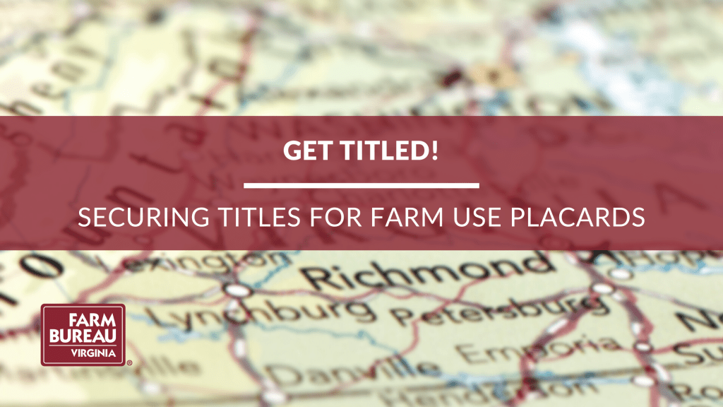 With recent changes to the motor vehicle code for permanent farm use placards in Virginia, many farmers are faced with a problem; they own a vehicle and never found it necessary to have the vehicle titled in their name. Whether they never took it on the road, or some other reason, they now are posed with the problem of how to get their vehicle’s title in their name. Under current Virginia law, all motor vehicle owners, including owners of trailers or semitrailers, are required to obtain the certificate of title for the vehicle before it is operated on any highway (§ 46.2-600).